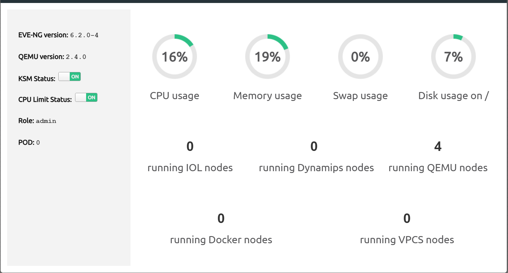 I also setup EVE-NG to run virtual labs. Here it’s running (4) instances SONiC NOS