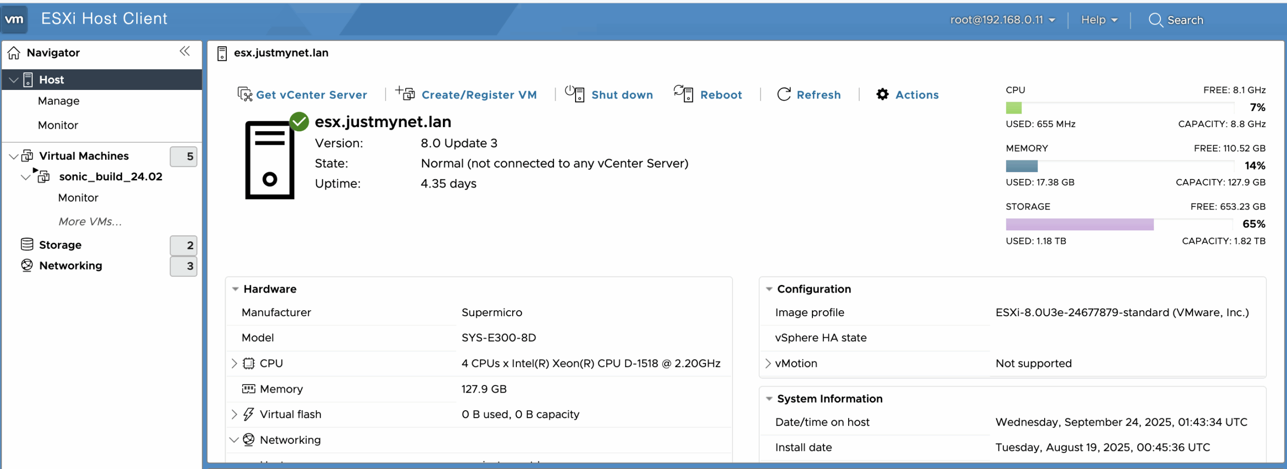 Those SATADOM’s are HUGE improvement over the thumbdrive that I had ESXi 7 running on.