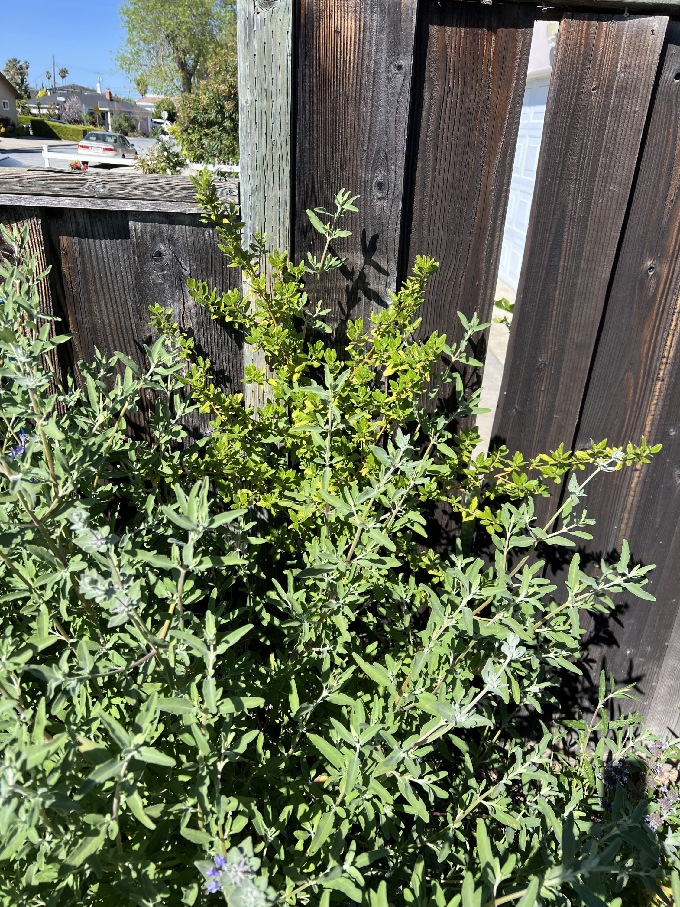 5/1/25 – Ray Hartman is getting swallowed up by the Pozo Blue sage! It’s hard to see but the Ray Hartman is about 4′ tall now and only in it’s 2nd year .