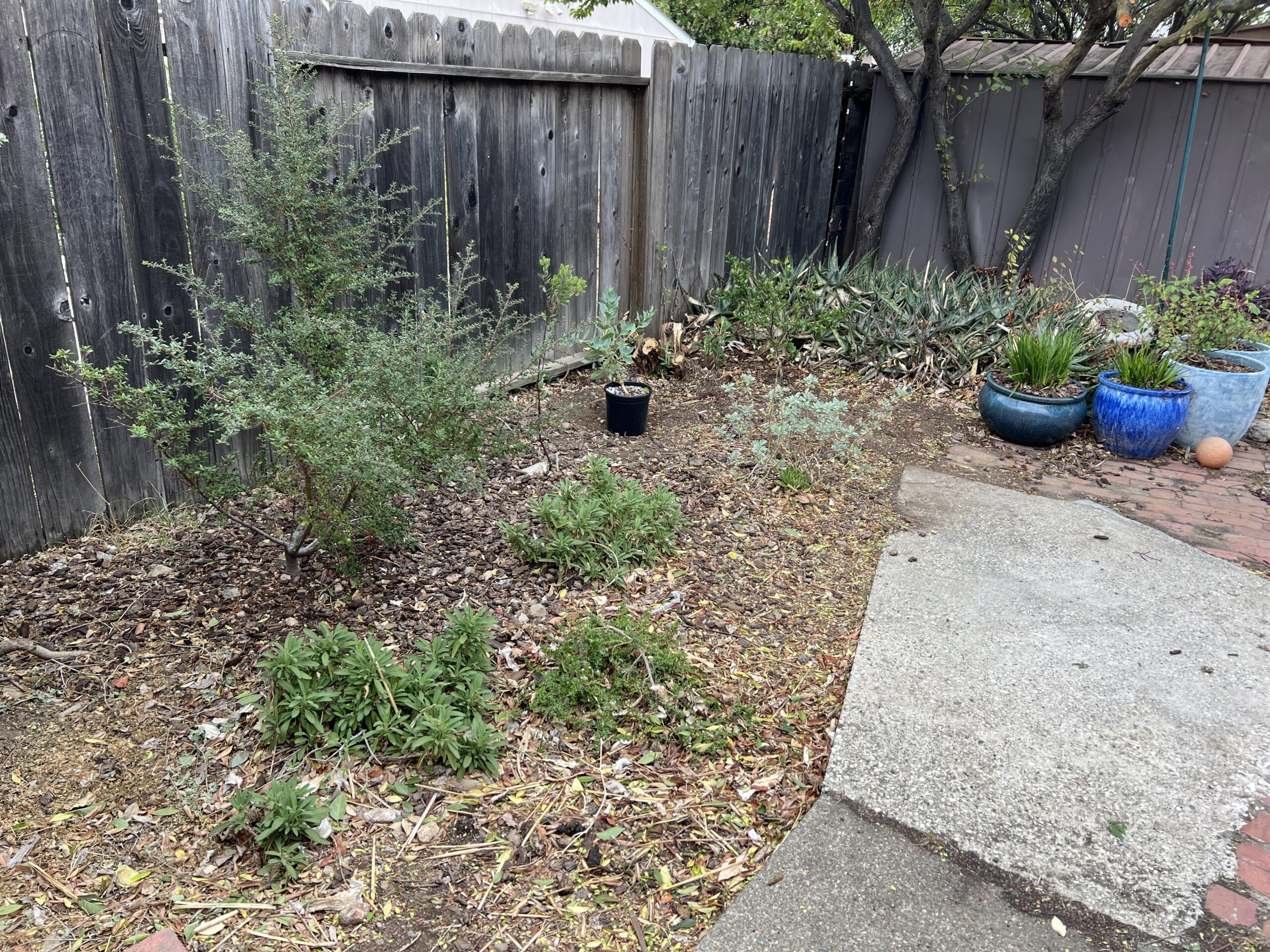 5/3/25 – Holly in her favorite spot. I’ve added several more CA Natives with the Darkstar. Mr’s Beard sage, Coyote Bush, Celestial Blue Sage,Bandagii Sage, Woolly Bluecurls, Louis Edmunds Manzanita.