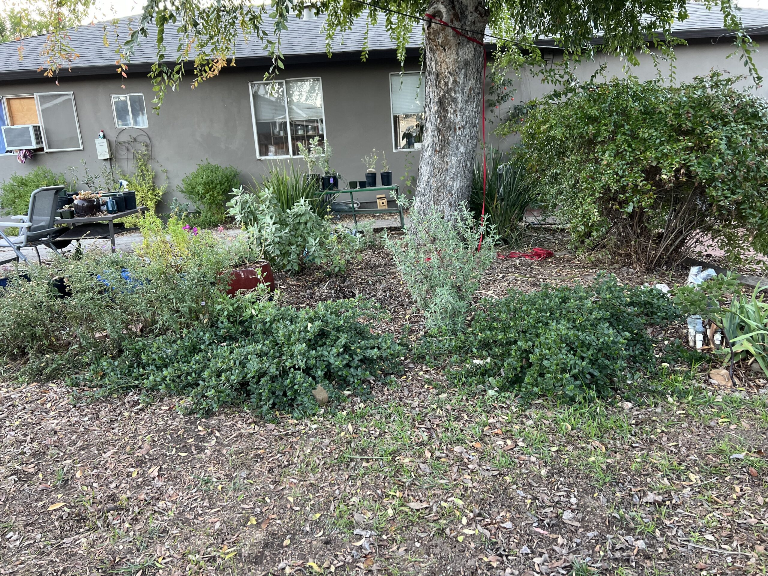 9/14/25 – Yankee Point Ceanothus is extremely happy where it’s at and starting to spread out in all directions. It contrasts nicely with the Pozo Blue and White Sage. It’s so much nicer than that English Ivy that I replaced. The Echium has been removed to make way for the Sages and Buckwheats! I also removed the Privet that is considered highly invasive and has horrible smelling flowers that kind of burn your nose, much like Jasmine or citrus blossoms.