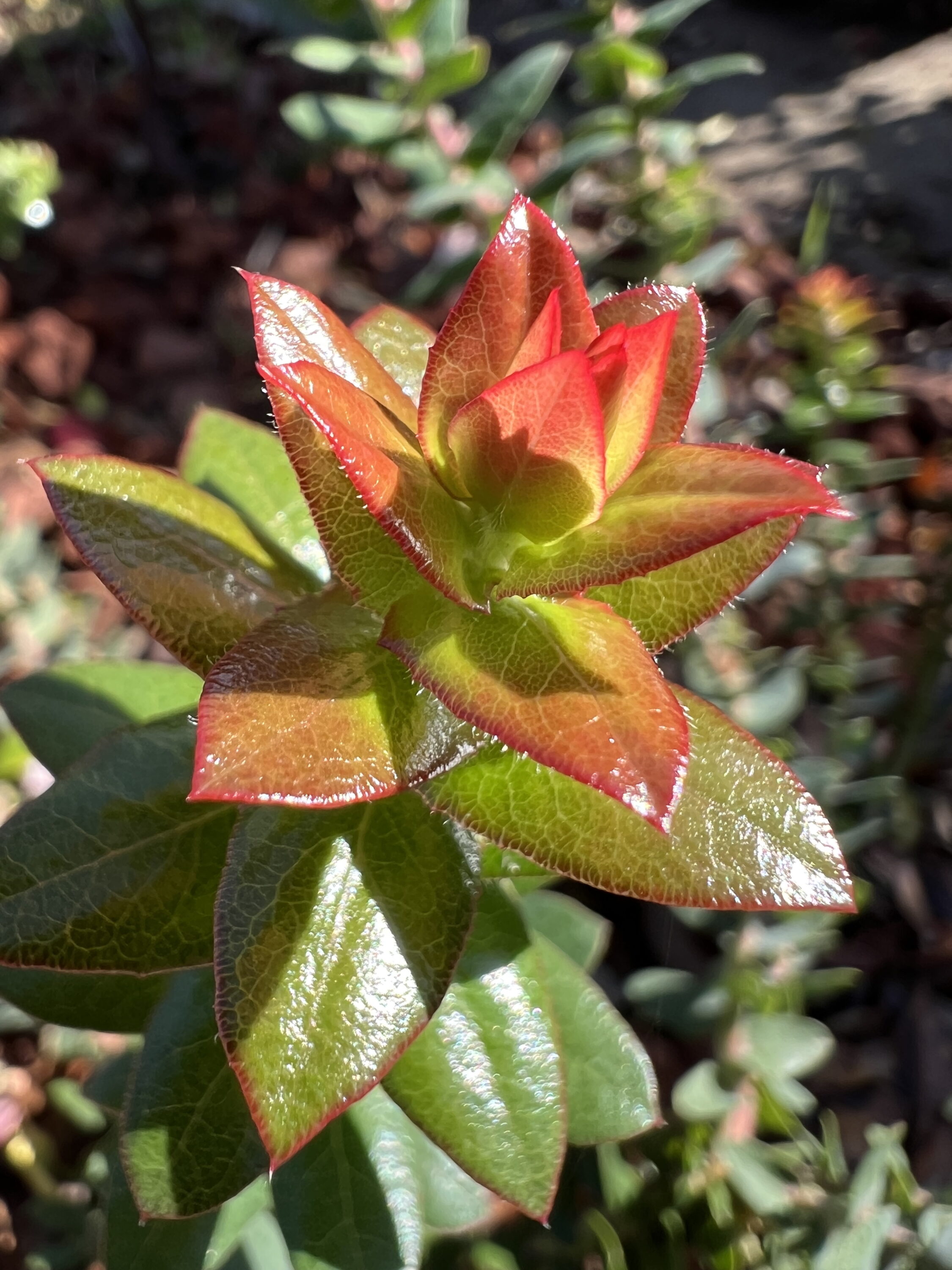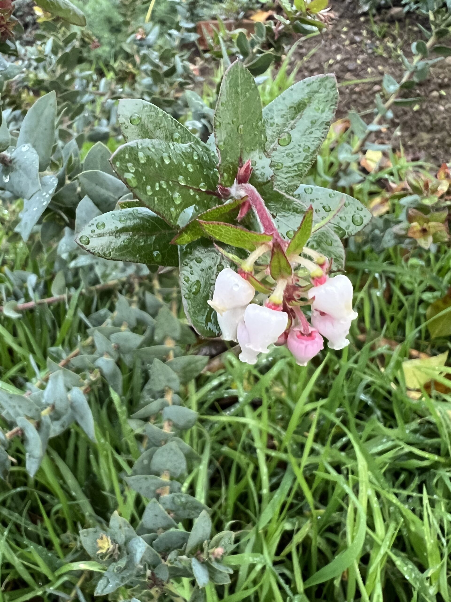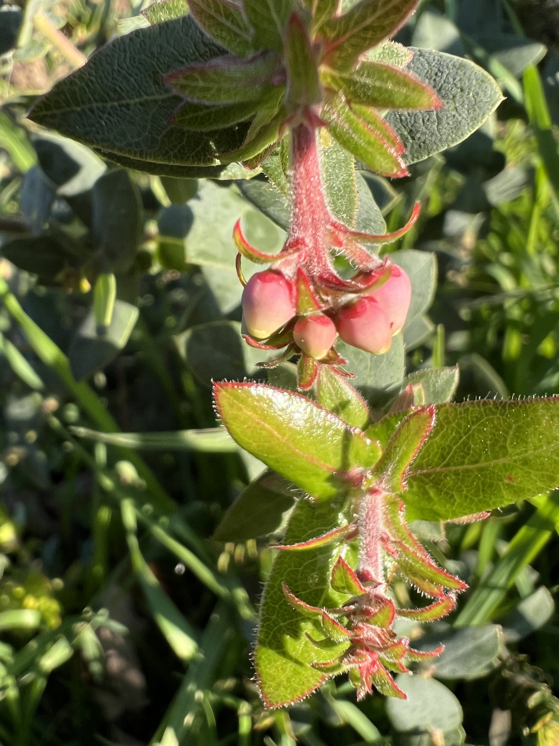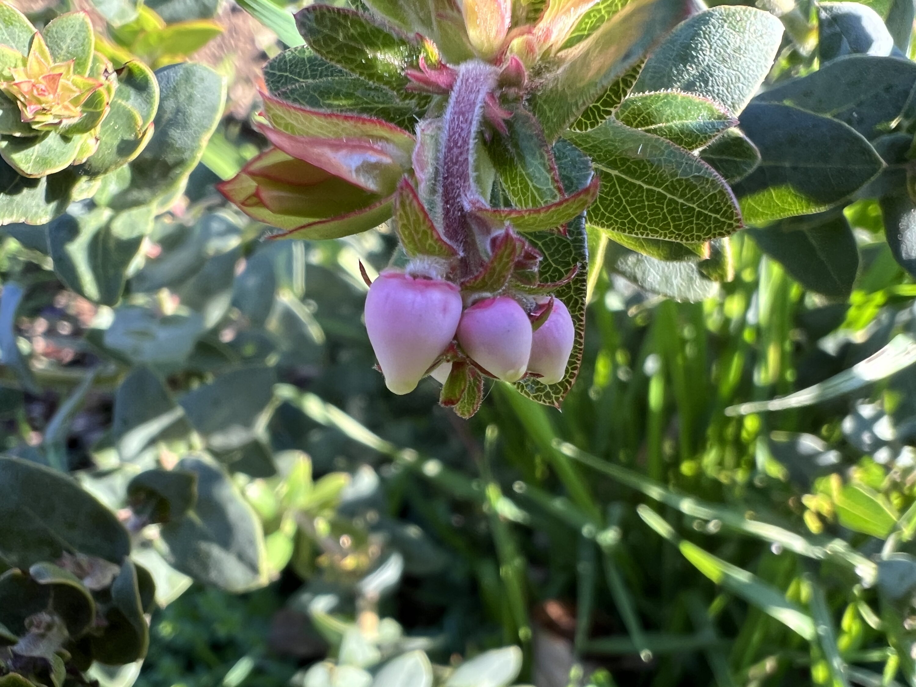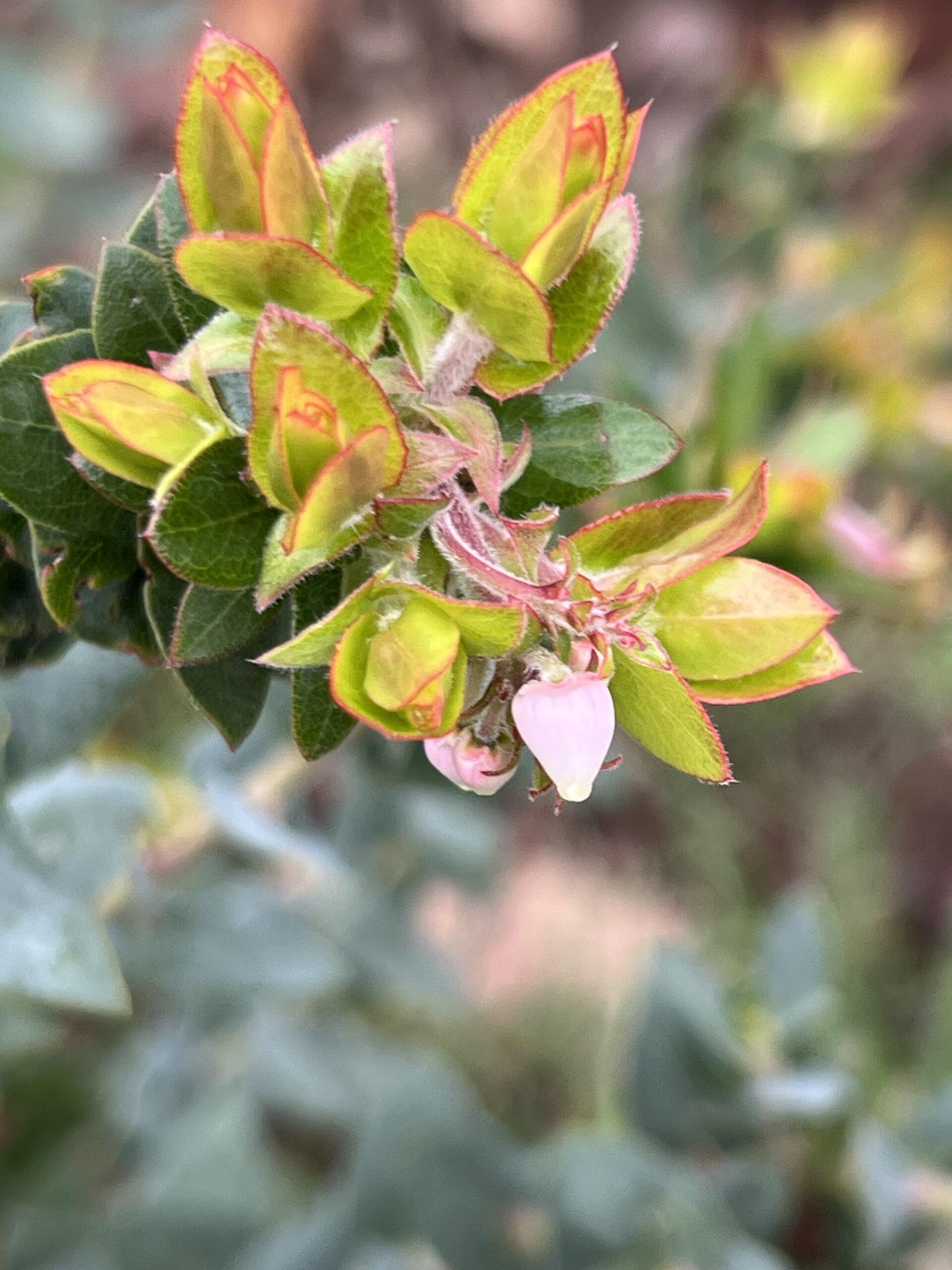 11/16/25 – First flower on the Brother James manzanita. The new leaves are very light compared to what the mature leaves look like.