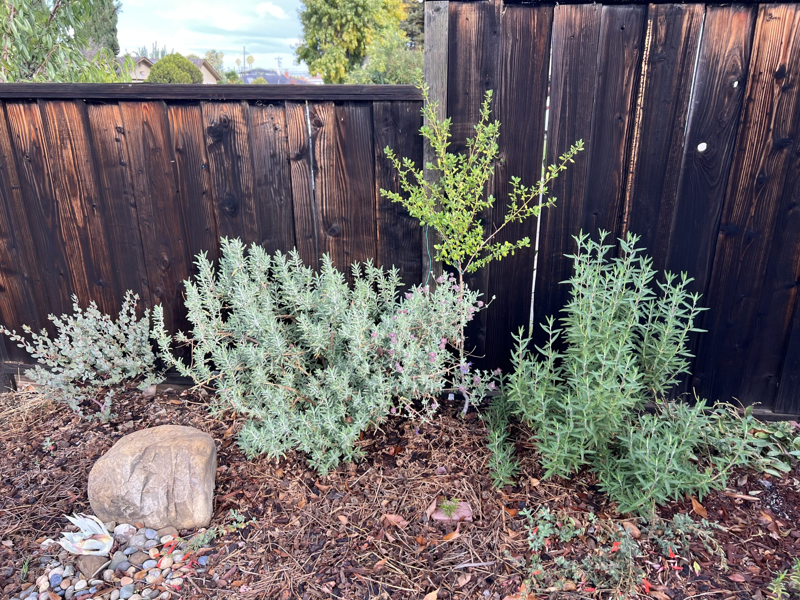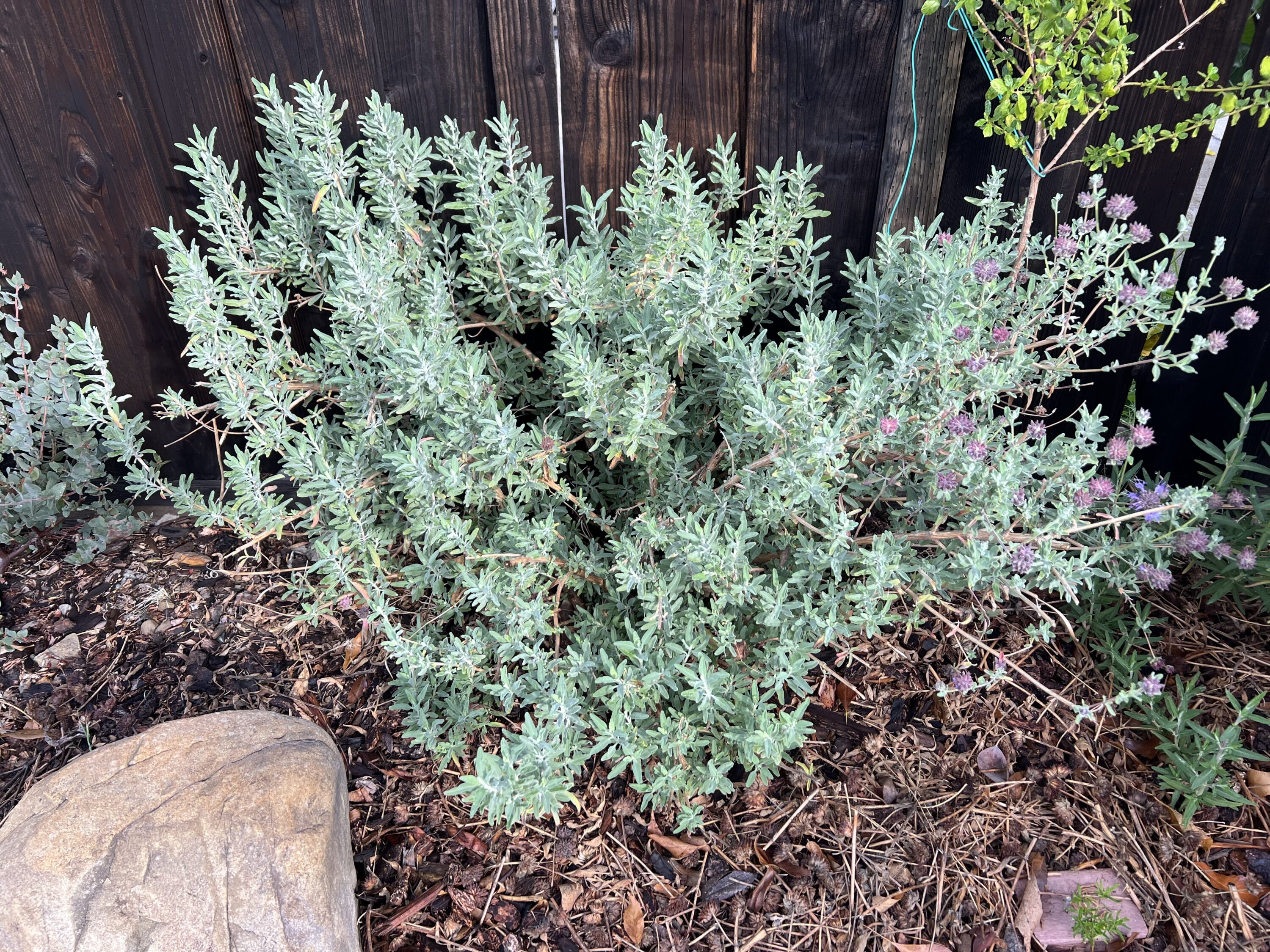 2/22/25 – Pozo Blue Sage in the backyard, the cement ring is for protection from the dogs.