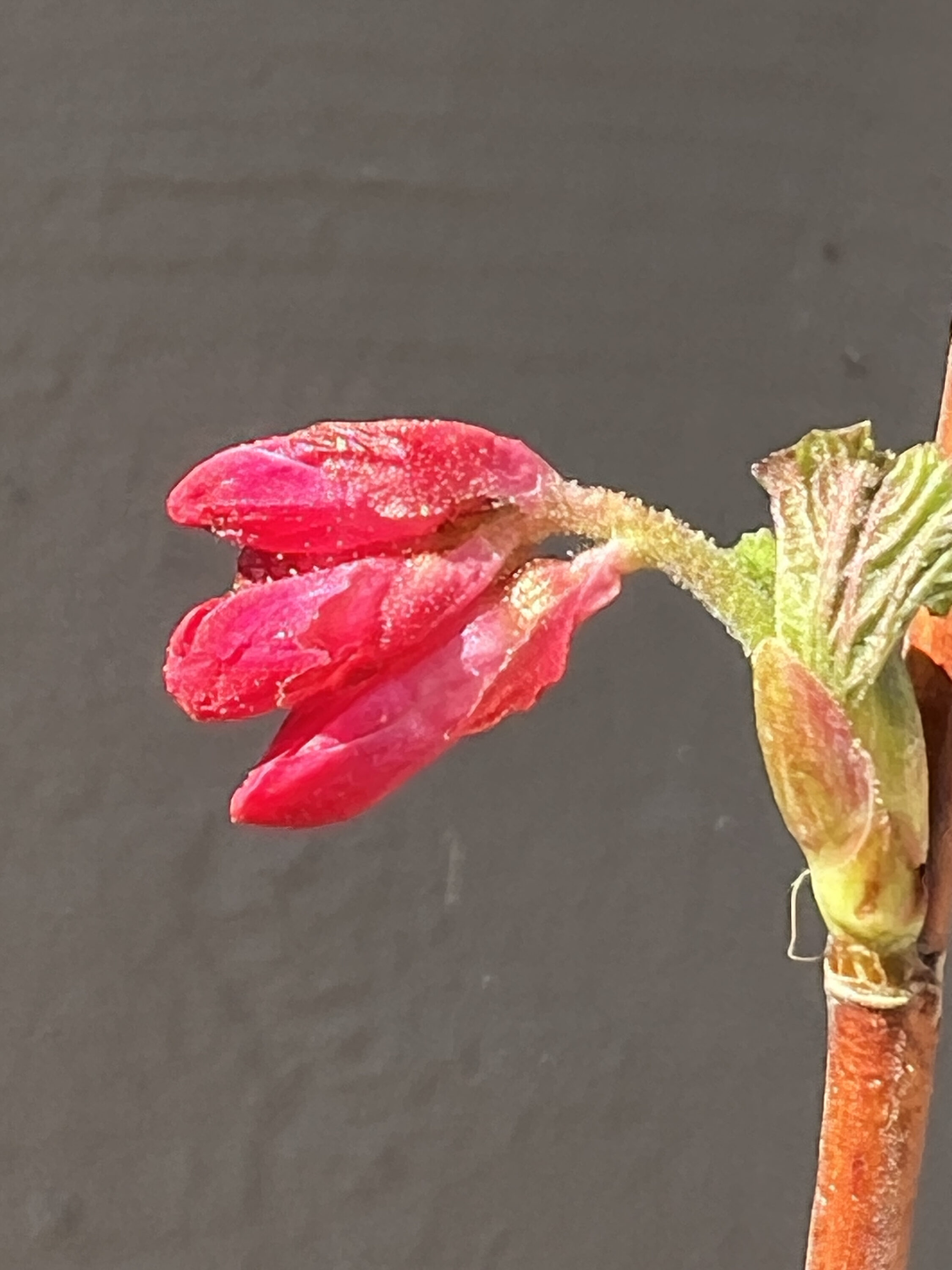 2/6/26 – First flowers are starting to pop and the are very bright red.