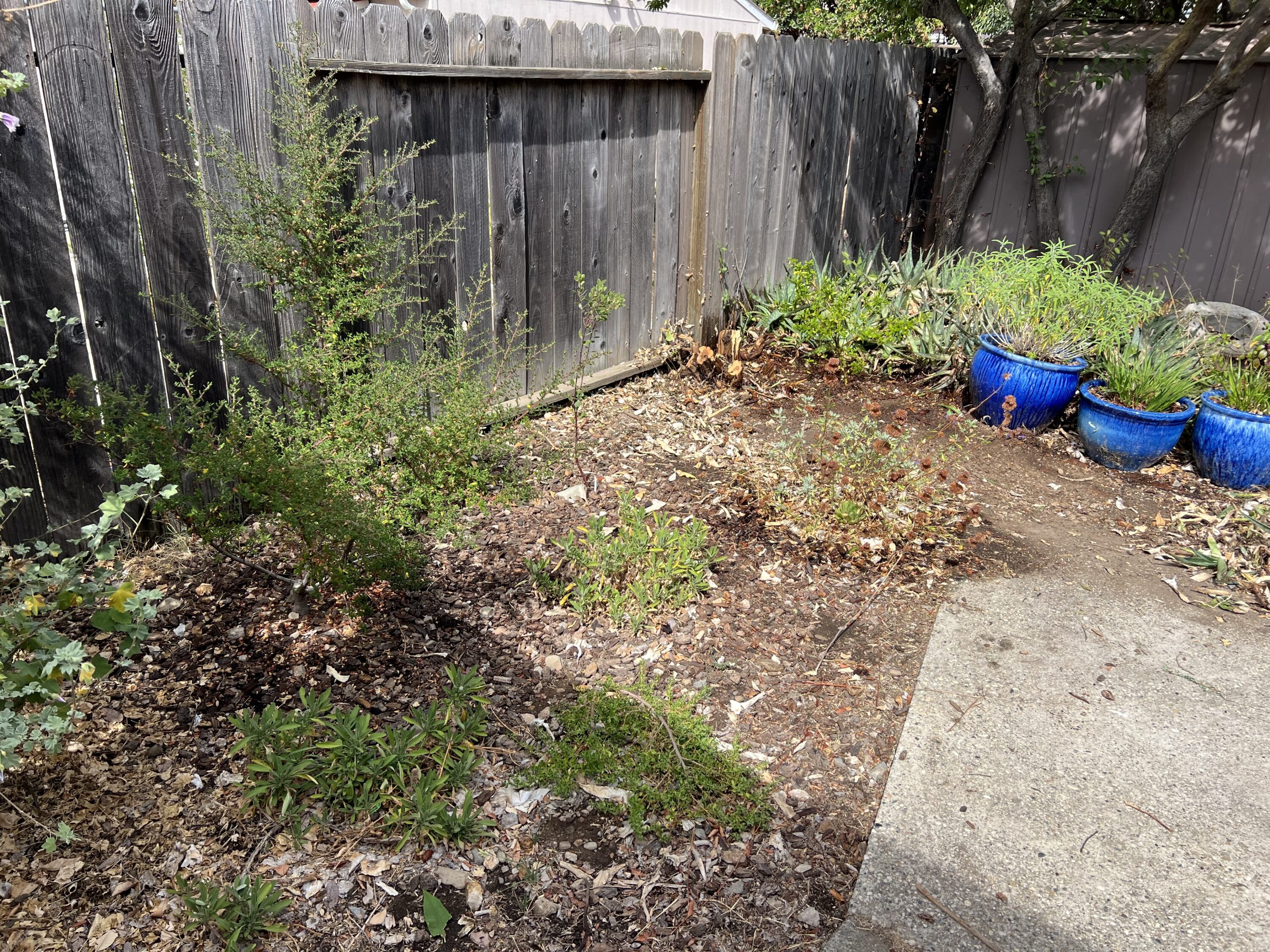 So much more space with the Aloe trimmed back and the Butterfly bush gone. This whole section is CA Natives now. I think I’ve got room for 1 more plant in this mix, I’m thinking of planting the Channel Islands Bush Poppy.