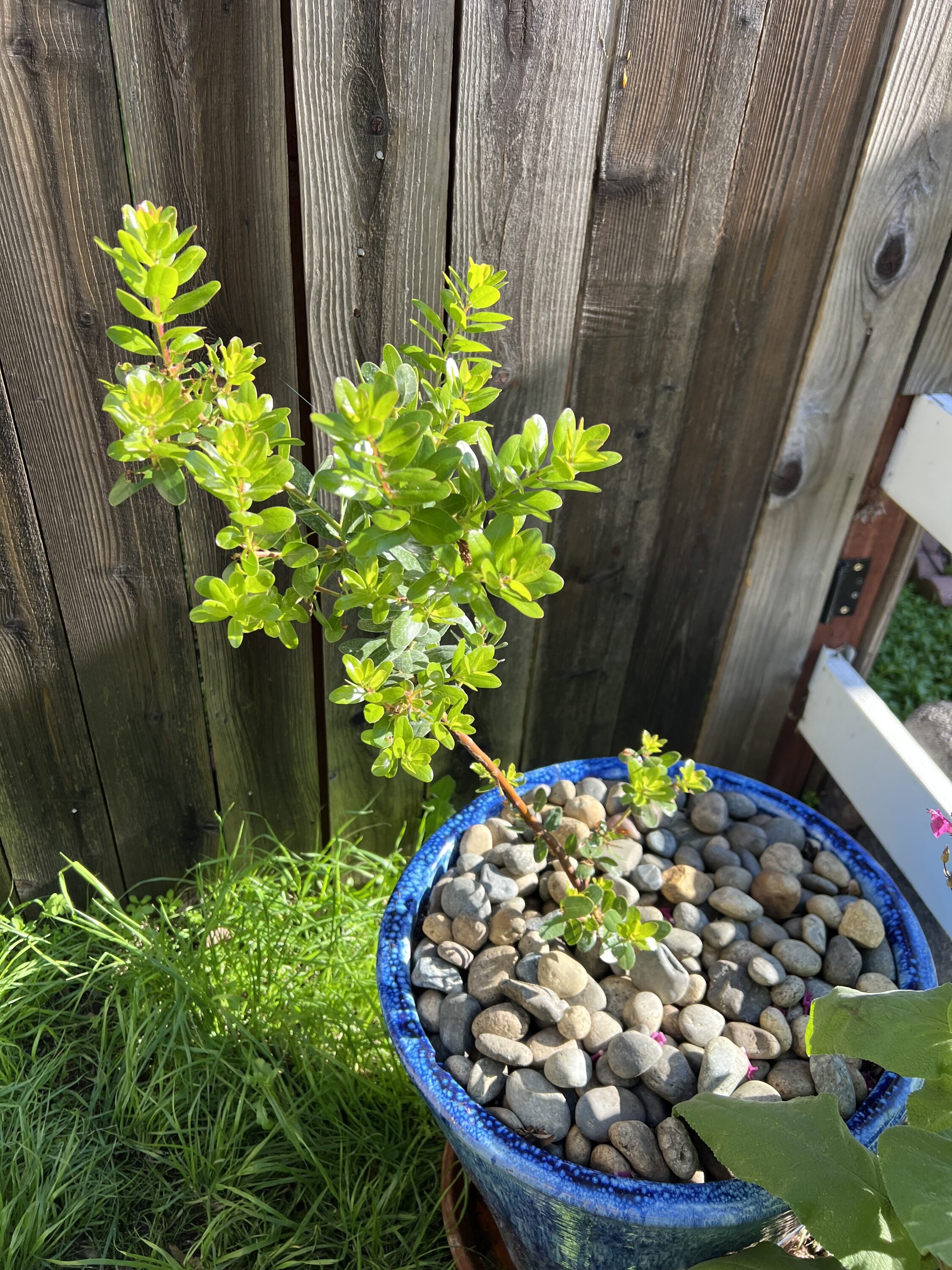 7/9/25 – I purchased this Canyon Sparkles manzanita from Linda Vista Natives. This one is supposed to do well in pots, which is rare, so I had to add it to my collection of container grown manzanitas. I had a large pot with a Bougainvillea in it that I ripped out and will be throwing away. My taste in plants has changed dramatically since I’ve fallen in love with CA Natives! Looking forward to seeing how this does over the years. I added about 4-5 cups of glacial rock dust and a whole lot of rice hulls. Also added some Mycorrhizae to the mix.