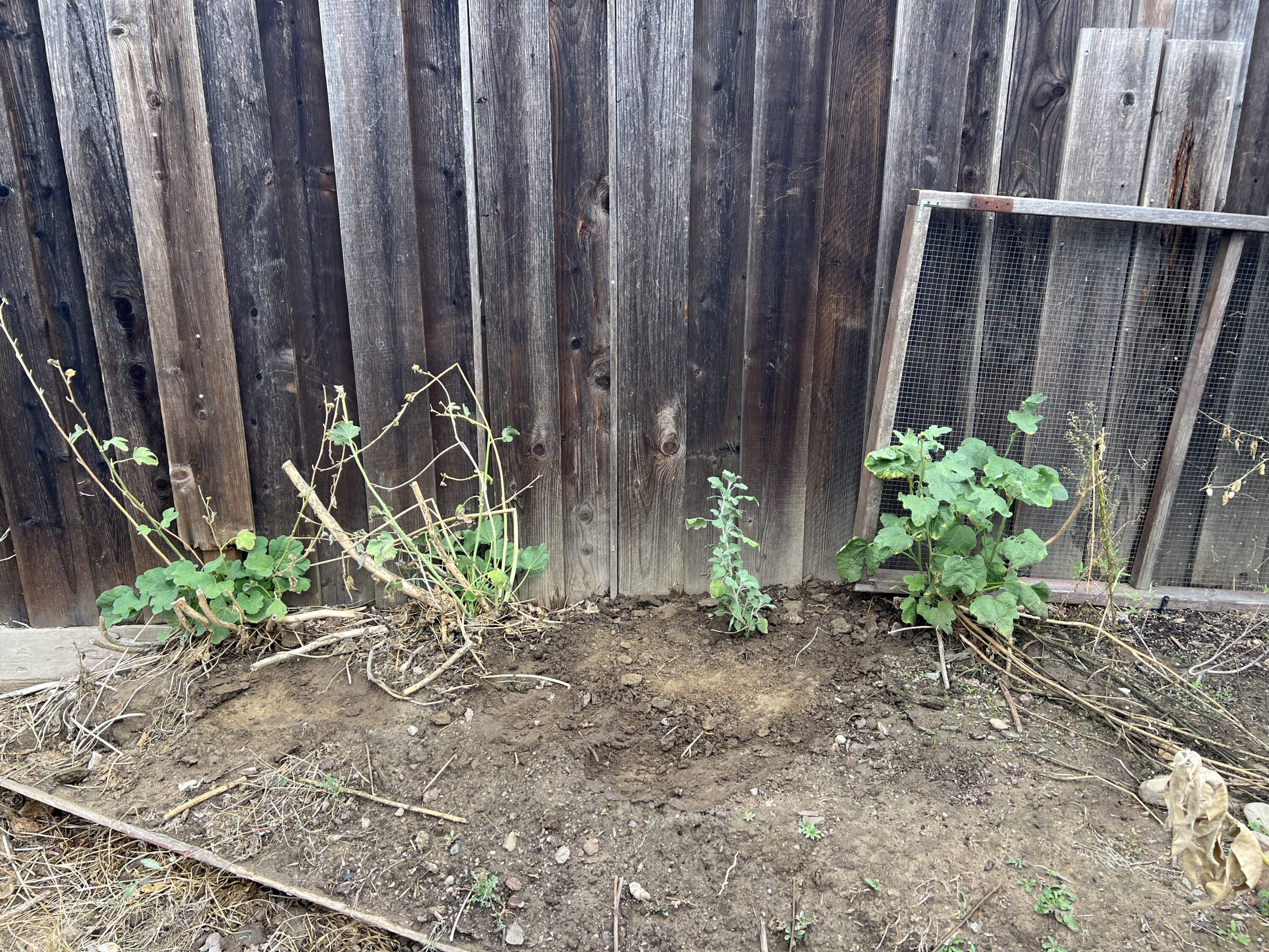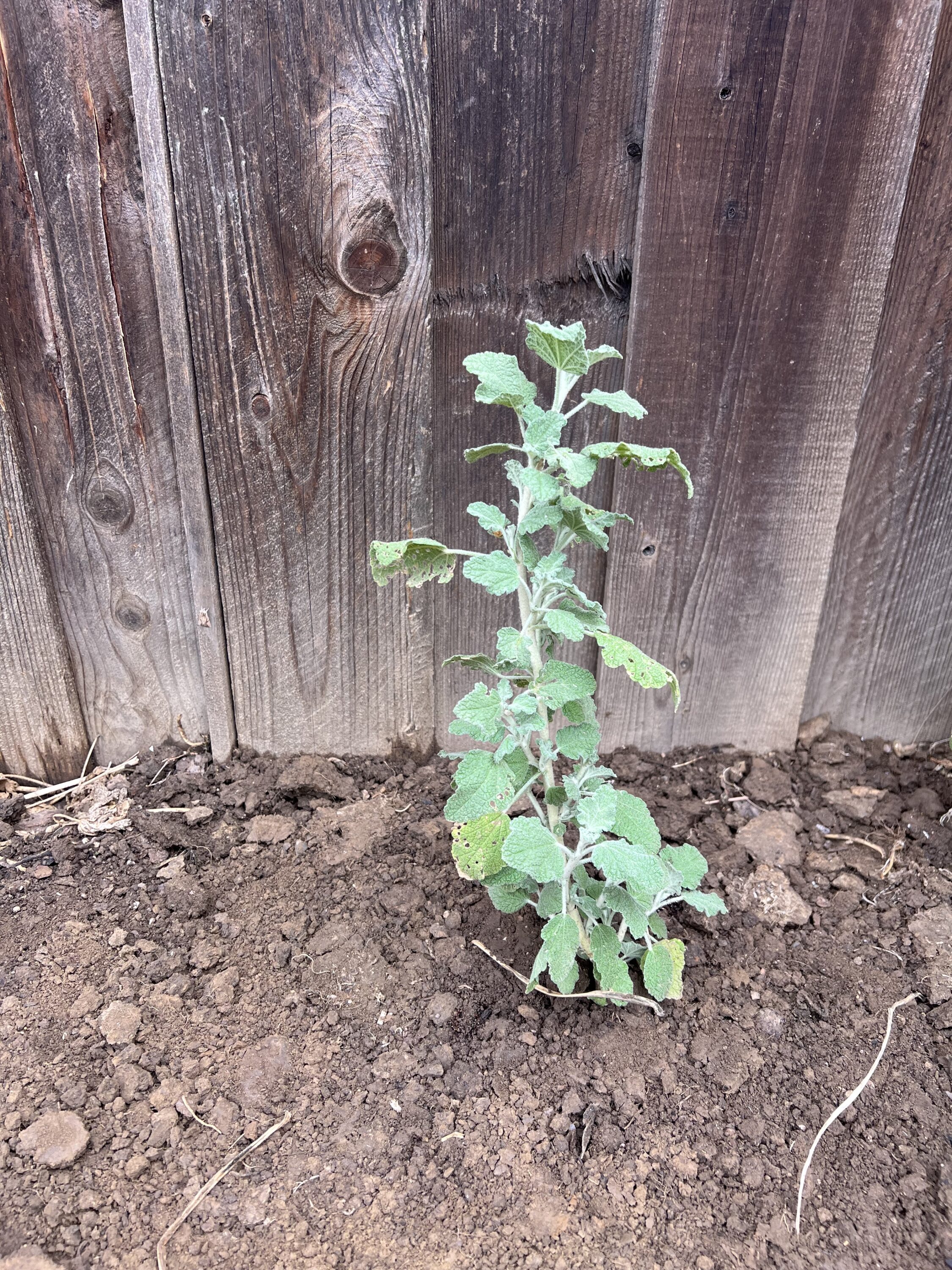 10/15/25 – Planted along the back fence among all the HollyHocks. This plant has a fast growth rate and can reach up to 16 feet tall and 10 feet wide.
